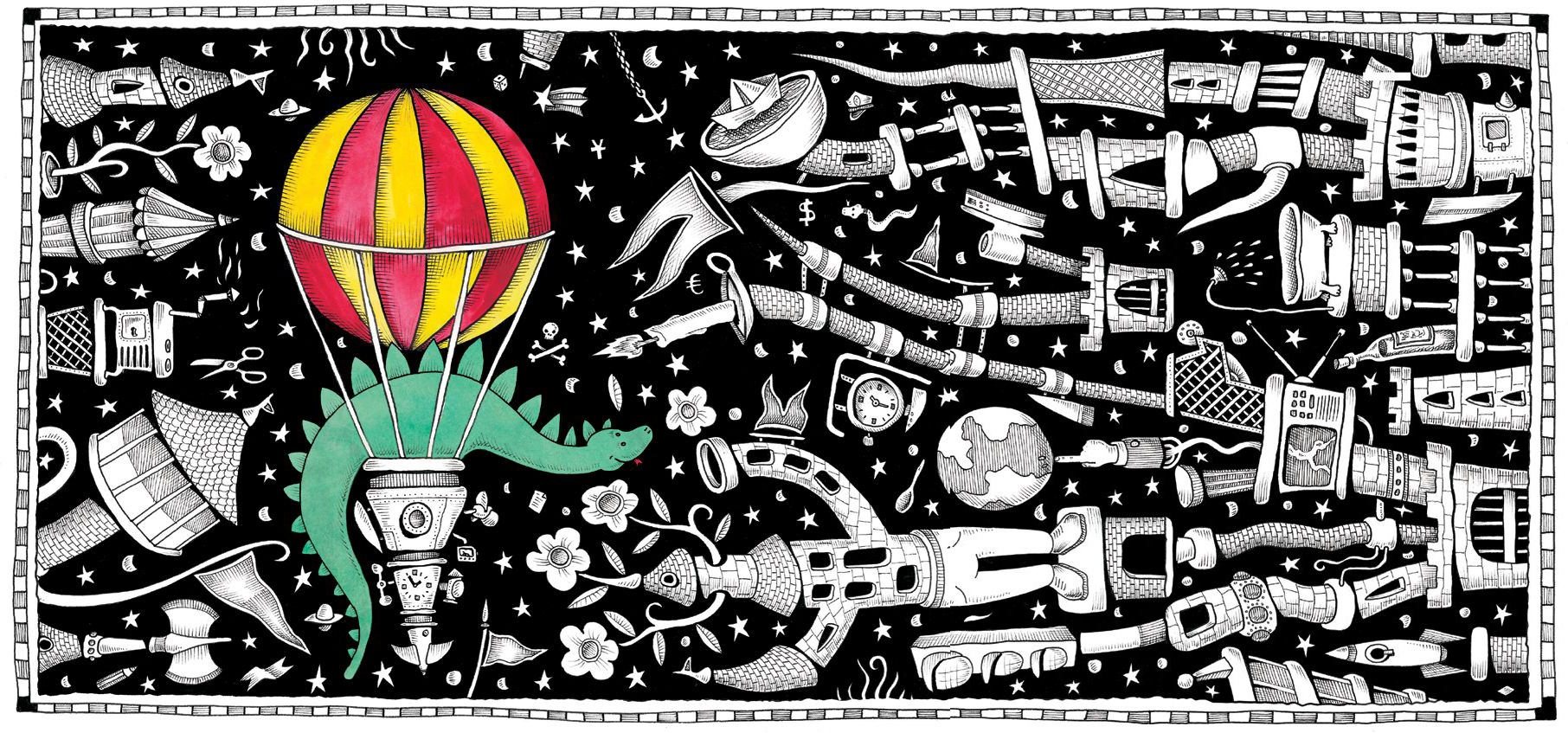 Sin lugar a duda la imaginación. La posibilidad de crear un mundo entero con nuestro lápiz. Un mundo que antes de nosotros no existía. Hacerlo desde lo estético, desde lo conceptual y desde lo lúdico. Creo que los ilustradores que tienen técnica, que pueden dibujar y colorear bien, pueden trabajar. Pero el mundo se nos abre cuando uno puede inventar, cambiar, reproponer, crear, darle vida al trabajo. Y, por otro lado, es muy importante saber vendernos. Hay ilustradores muy grosos que suben sus cosas a las redes sociales y esperan que con eso les caiga trabajo. Pero eso solo no al canza. Hay que salir de nuestro taller y enfrentar el mundo. Mandar nuestras producciones a las editoriales, a las agencias de publicidad, a los estudios de diseño, hay que ir a las ferias y vender como quien vende medias. Creo que a quienes hacen esto les va bien.
