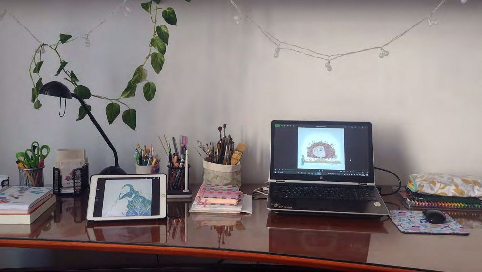 Los que más uso son: Procreate y Photoshop para ilustrar; Illustrator para organizar, diseñar y presentar propuestas; InDesign si debo maquetar un trabajo.
