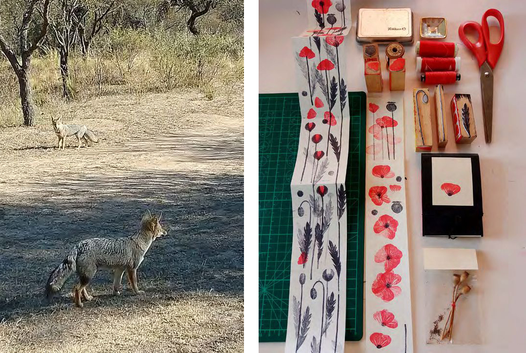 Todo mi trabajo gira en torno a materiales analógicos: papeles e hilos. Intervengo el papel con lápices, collage, sellos y esténcil.